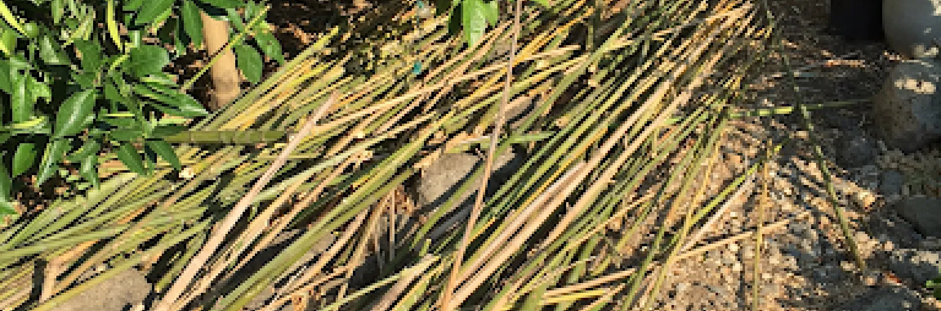 Aware of the invasive nature of this species of running bamboo, I installed a 30 foot long corrugated PVC barrier to keep the three bamboo plants from spreading under the fence to our neighbor's yard and into our former veggie garden area. Little did I know then that the bamboo rhizomes would be worse than Audrey II in the cult movie “Little Shop of Horrors.” Within about three years, those three plants had formed a wonderful privacy screen 20-25 feet high. Unfortunately the lower branches of this dense hedge-like barrier was hiding the fact that the yellow bamboo rhizomes had found a way to take root in the new soil formed by decomposing leaf litter and to creep over the root barrier. The invasion of my former veggie-growing area had begun.