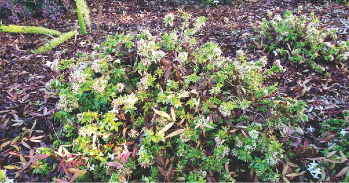 Red Loropetalum- No fall cleanup, only infrequent general shaping to keep the desired size.