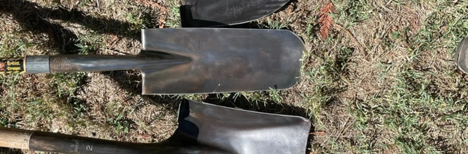 Photo 3A Spade is made for digging. If it has very little contoured to the bowl and it has a wide “shoulder” or “flange” where you put your foot, it is a spade. In the above photo, the middle one is a spade. The other two are shovels.