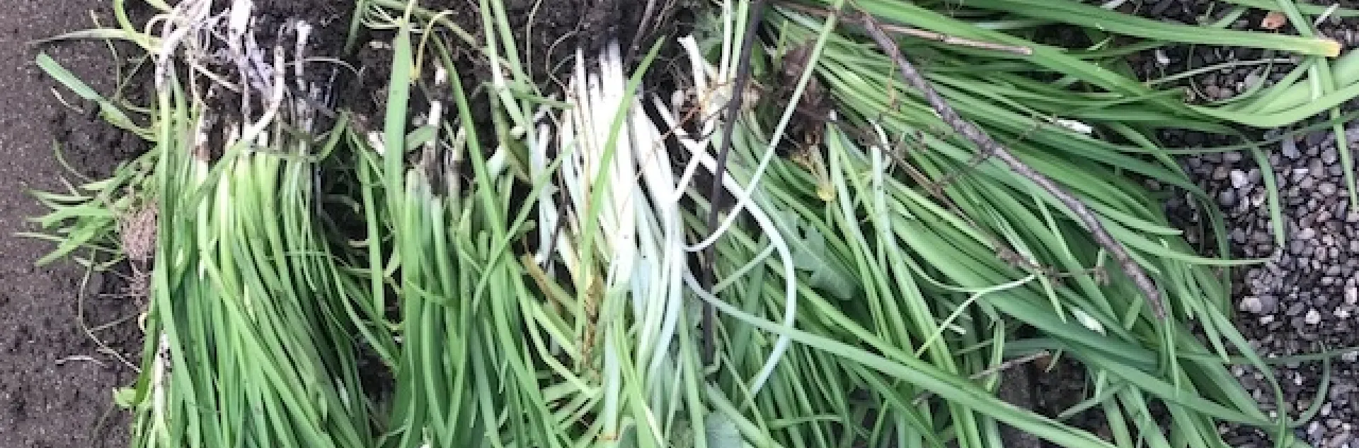 A couple of weeks ago, after the rain, the ground was soft enough for me to pull the plants out by the roots.  While this is richly satisfying work, a few onion bulblets are always left behind.  It is better to use a garden spade or fork, and throw out the clod you have exhumed, dirt and all.  My husband was so bored with “Shelter In Place” he did a great job digging them out, with a comfortable garden stool, gloves, and a Japanese weeding knife. They are almost gone. By the way, this is the only recommended way to remove them. Herbicides roll off the waxy leaves of the wild onion and have no effect on them.