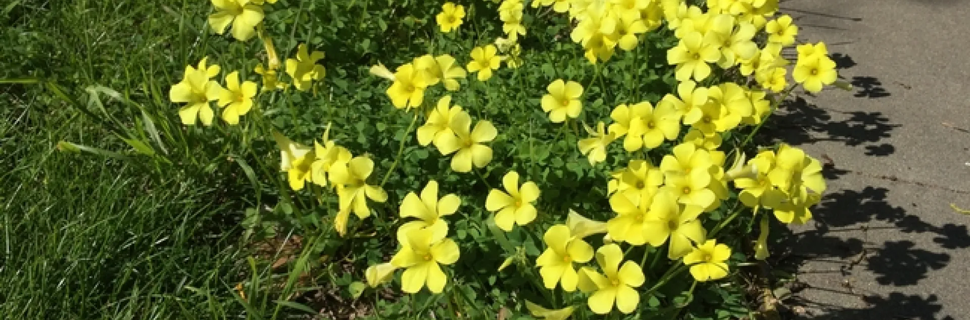 In his landscape, Bermuda buttercup had taken over a 50 square-foot area and was growing in and around other ornamental landscape plants. I used the online IPM Pest Notes: Creeping Woodsorrel and Bermuda Buttercup to tell him more about this weed.