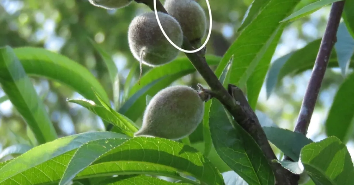 How much to thin depends upon the tree species. With peaches and nectarines, it's important to make room on the branches for each fruit to grow to 2-1/2 to 3 inches in diameter. Thin by pulling off 3/4 to 1-inch long fruit in April and May, leaving one fruit every 6 inches. This results in more fruit on the ground than on the tree, but it's important to produce large, flavorful fruit and to minimize limb breakage.