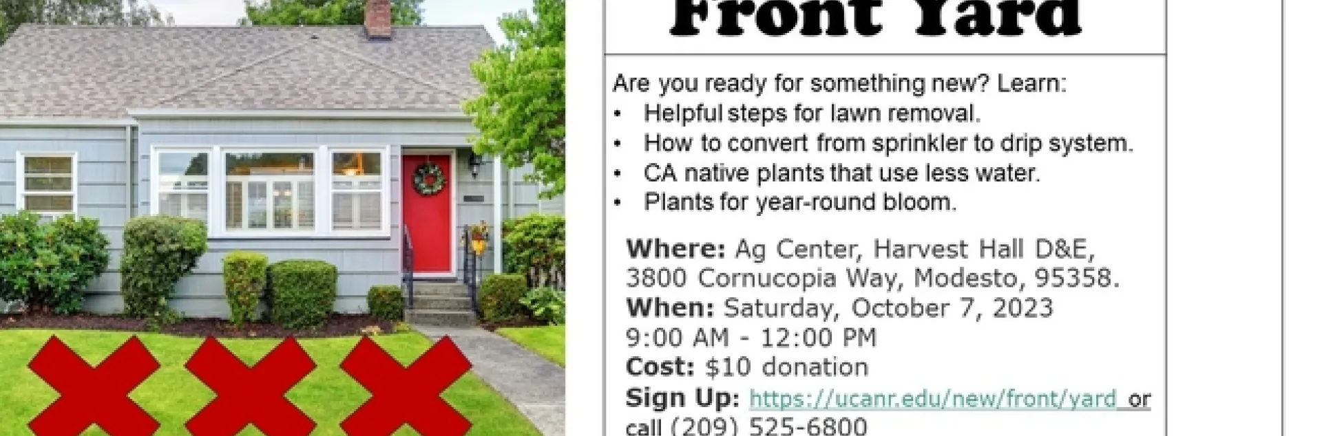 Hello, our UC Cooperative Extension Master Gardeners hope to see you this coming Saturday, October 7, 2023 at 9:00 a.m. for a workshop that will help you exchange your traditional landscape for one that invites in pollinators, birds, friends, and neighbors wanting to be a part of it! Please register online or call the office so we know you are coming, as we may not have enough supplies for you if you don't.