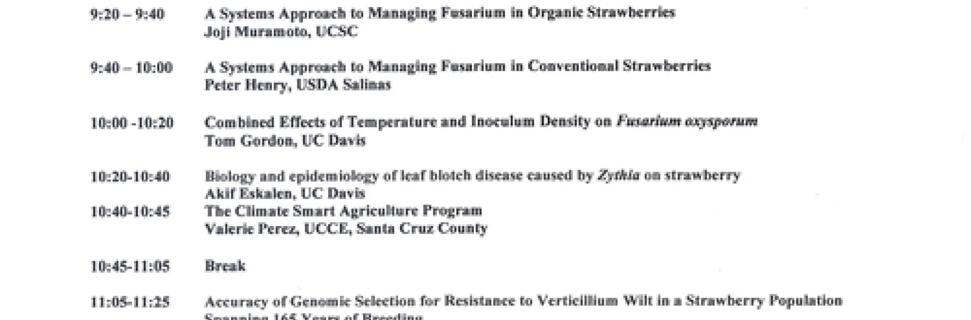 9:40 – 10:00 A Systems Approach to Managing Fusarium in Conventional Strawberries