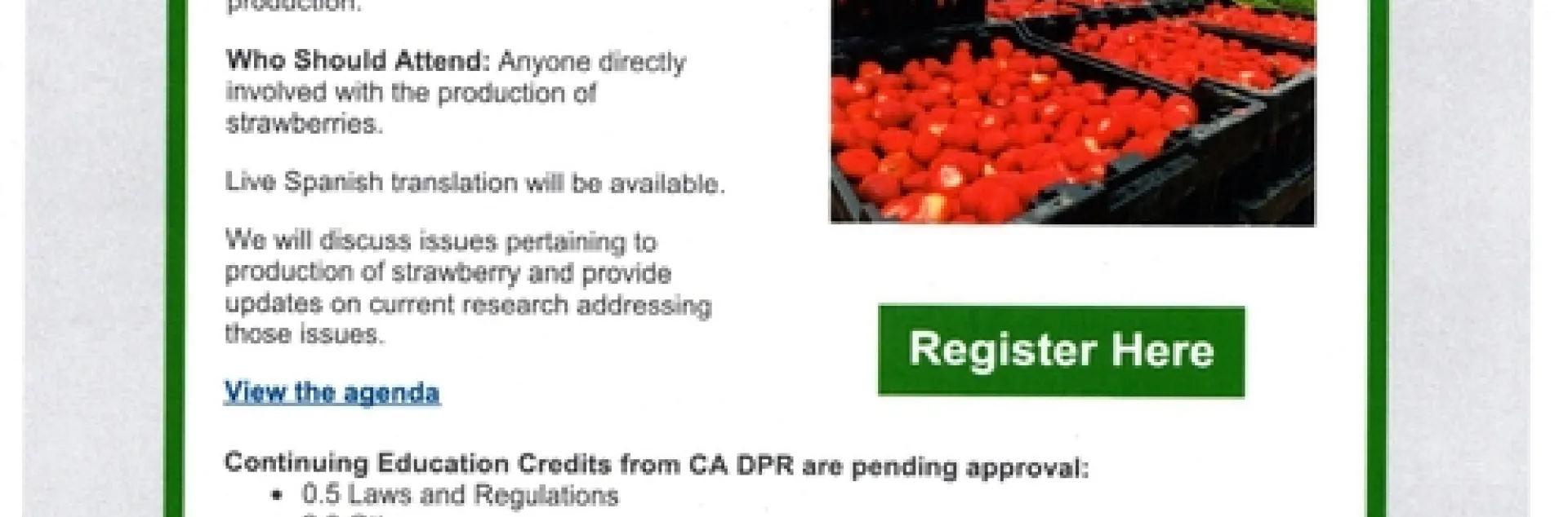 Happy New Year all!  We are spooling up quickly with our annual strawberry production meeting, and have the morning of February 2 blocked out for this event.  While unfortunately we have to do another round of ZOOM, we will be enjoying the excellent meeting administration of UC ANR Event Services, not to mention the usual high quality of speaker and content.