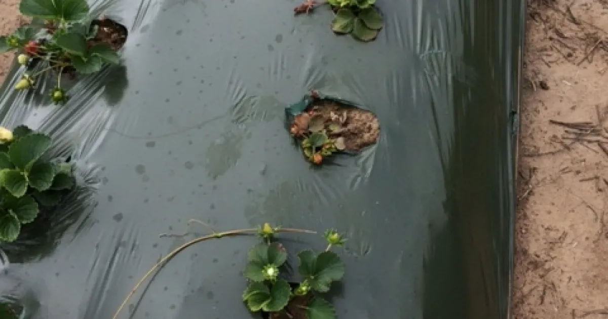 To concentrate people's minds on what Fusarium tolerance in strawberry can and can't do, consider the first photo below which is part of a crop termination trial I set up with a grower collaborator last fall and now coming into production this year. The areas receiving no fumigation treatment remain heavily infested with Fusarium, and lo and behold, the ostensibly resistant strawberry variety, 'San Andreas', is already going down.