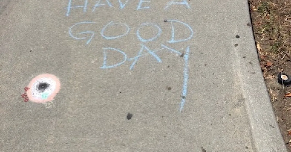 Too, since classes started there are all the kids all walking to school. I don't know who's been doing it, but someone has been chalking inspirational messages for everyone on the sidewalk - things like "Be Kind", "Smile More", "Show Gratitude" and lots more, it goes for like a quarter mile. Including the cheery message I attached below.