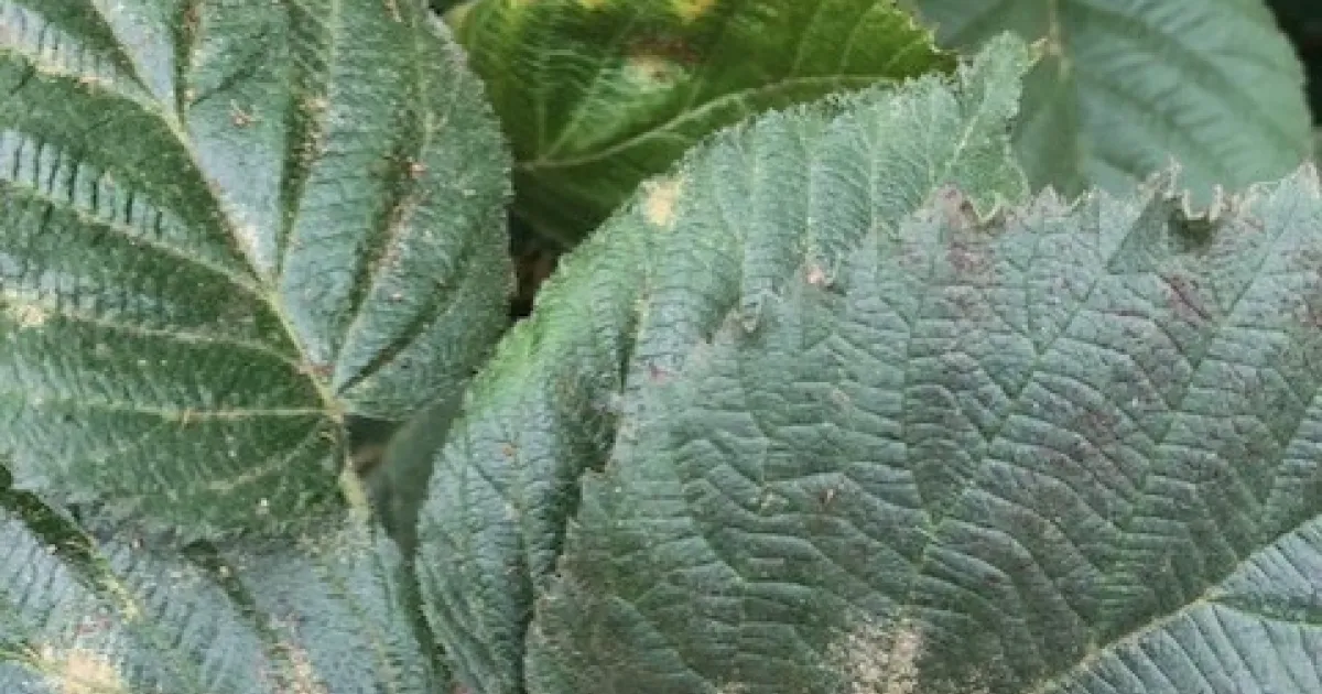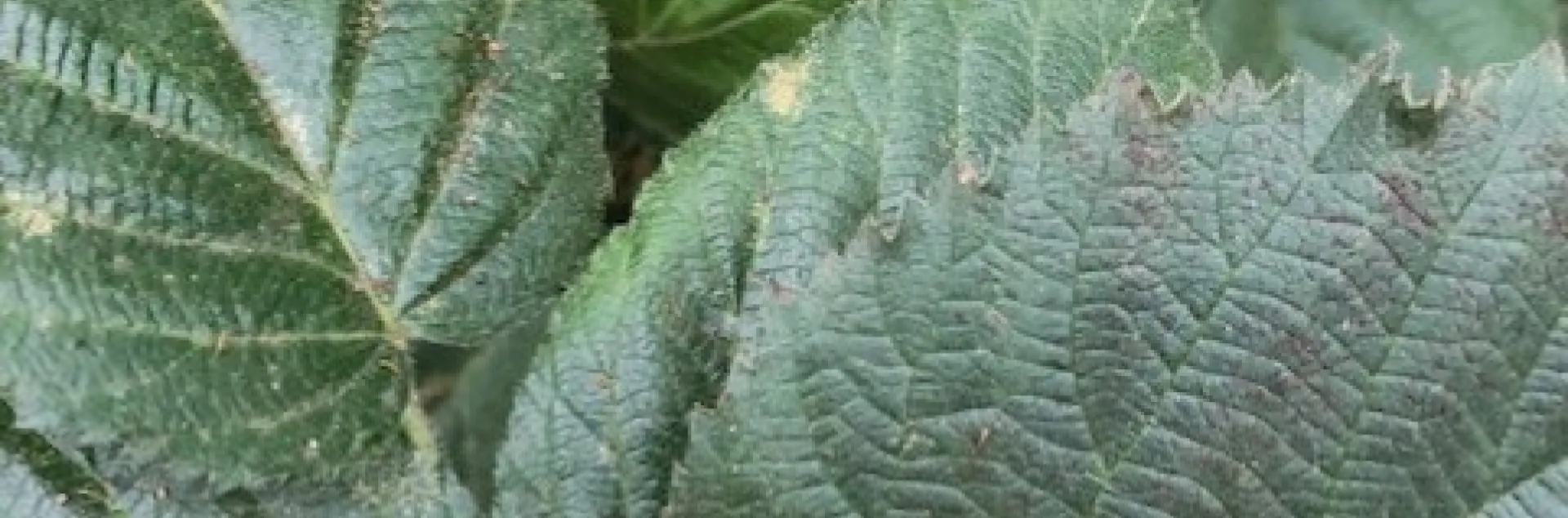 Here's one for all of you that I just can't figure out. Symptoms (see Photo 1 below) are on fruiting primocane blackberry, under tunnels. Maybe 5% of leaves affected, mostly limited to the bottom third of the hedgerow but issue does occur in bunches. Temperature-wise, as you all know, we've had warm weather the week prior to this one.