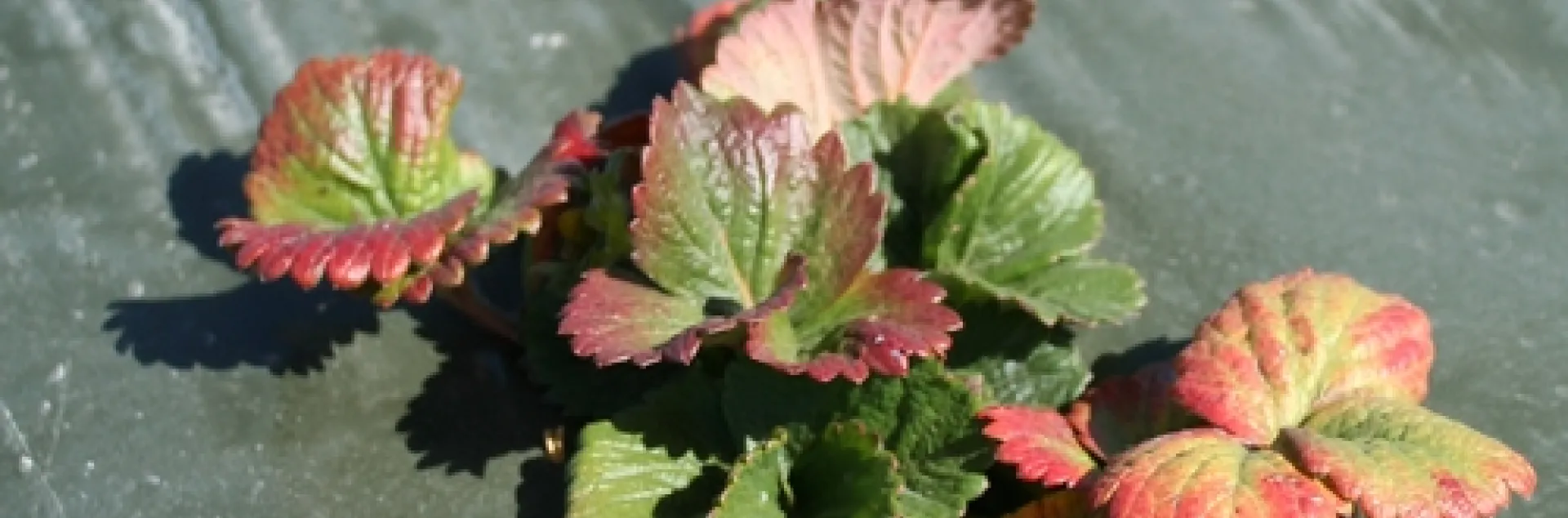 See the photos below. Affected strawberry plants presented with discolored leaves and stunted growth typical of nutrient deficiency or viral infection. On being removed from the soil, root growth was also limited, but the crown was not discolored as it would be for many soil pathogen infections.