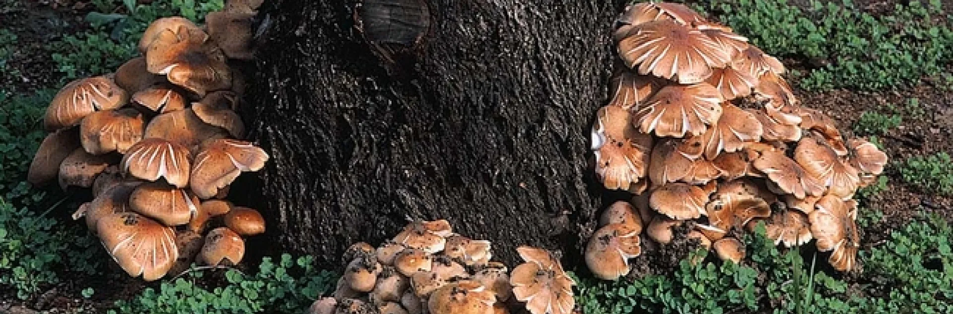 If a tree undergoes a slow to rapid decline without any obvious reason, suspect Armillaria as the cause. Certain areas, such as drainage areas from chaparral or woodlands are likely areas for this disease. Old roots left underground provide a food base for continued fungal growth and survival.