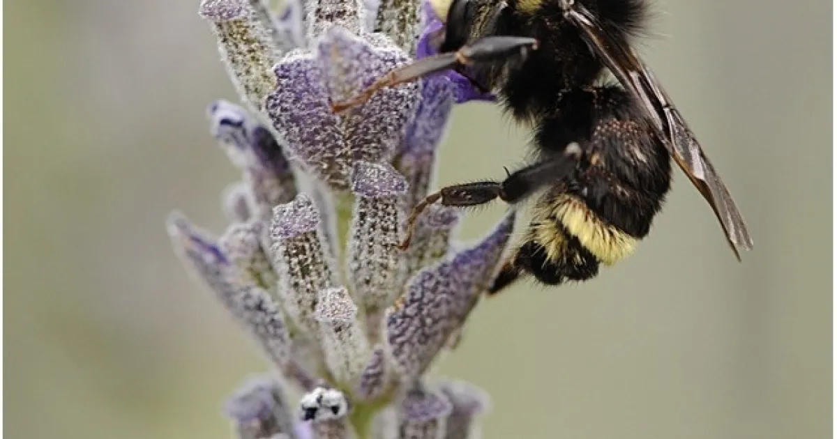 Bombus vosnesenskii ( say that fast) a CA native bumble bee buz pollinating a lavendar (not CA native) flower (photo: Kathy Keatley Garvey)