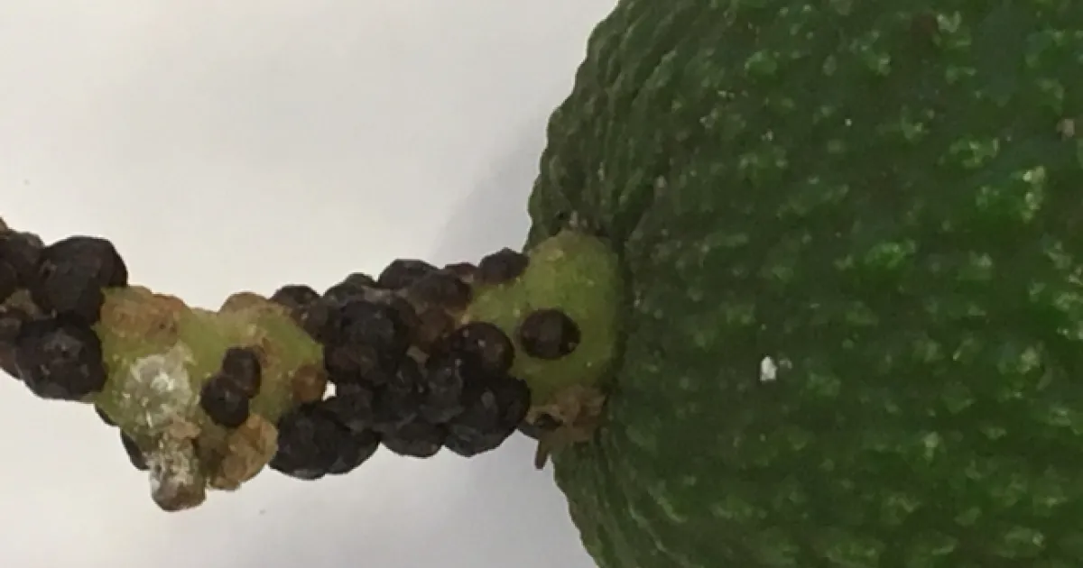 We live in unusual times and every year is different, so we are bound to see things that are different, or see things differently. Recently a pest control advisor brought in a sample of what looked like black scale (Saissetia oleae) on the stems of avocado fruit. Along with the scale came a mess of Argentine ant and sooty mold. The PCA had not seen this scale on avocado before. It is common on citrus and, from the name, it is also found on olives and over 100 other host-plants. I hadn't seen it on avocado before, and became somewhat alarmed and sent samples off to UC Riverside for identification. I thought maybe there might have been an introduction of a new scale, riding on imported fruit. Joe Morse and crew from UCR had done a study monitoring fruit coming across the border and found several scales on fruit that were not currently in California: