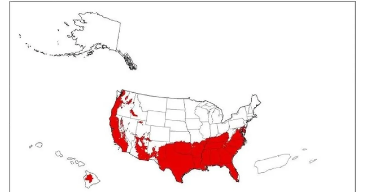 Calfflora shows cruel vine spread mostly along the coast south of San Luis Obispo, but it has the potential to spread thoguhout much of California. Currently, in the US, it is only found in California and Georgia. It is in New Zealand and Australia.
