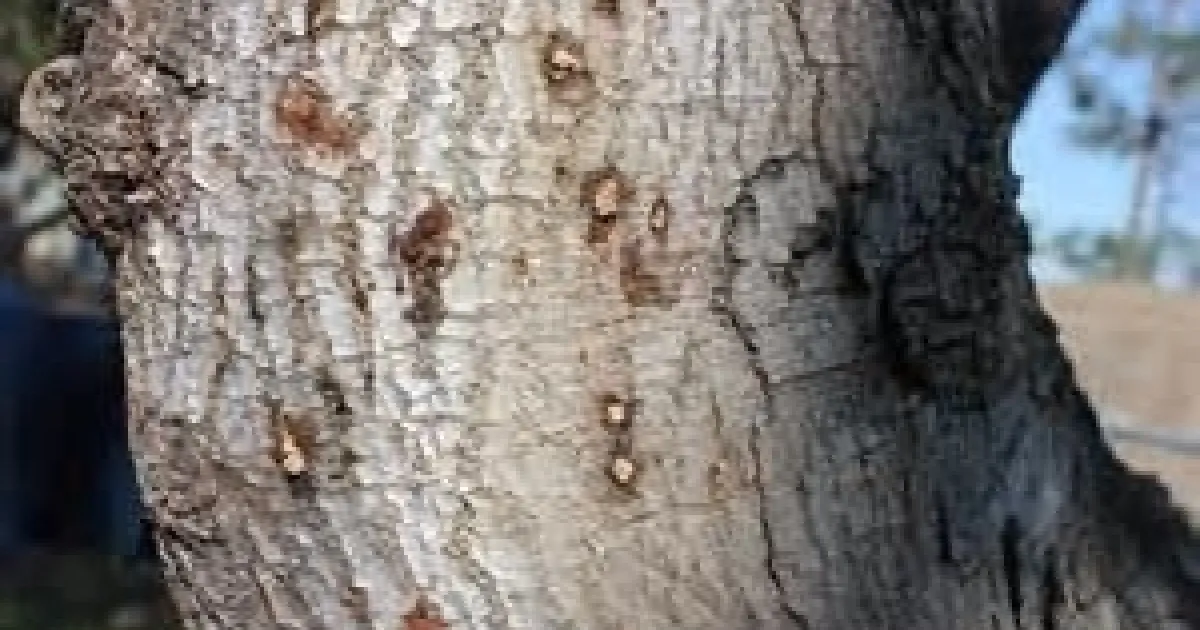 The polyphagous shot hole borer (PSHB) is an invasive ambrosia bee-tle that forms a symbiosis with a new, Fusarium sp., together causing Fusarium dieback on avocado and other host plants in California and Israel. In California, PSHB was first reported on black locust in 2003 but there were no records of fungal damage until 2012, when a Fusarium sp.was recovered from the tissues of several backyard avocado trees infested with PSHB in Los Angeles County. The aim of this study was to determine the plant host range of the beetle–fungus complex in two heavily infested botanical gardens in Los Angeles County. Of the 335 tree species observed, 207 (62%), representing 58 plant families, showed signs and symptoms consistent with attack by PSHB. The Fusarium sp. was recovered from 54% of the plant species attacked by PSHB, indicated by the presence of the Fusarium sp. at least at the site of the entry hole. Trees attacked by PSHB included 11 species of California natives, 13 agriculturally important species, and many common street trees. Survey results also revealed 19 tree species that function as reproductive hosts for PSHB., approximately a quarter of all tree individuals planted along the streets of southern California belong to a species classified as a reproductive host. These data suggest the beetle–disease complex potentially may establish in a variety of plant communities locally and worldwide.