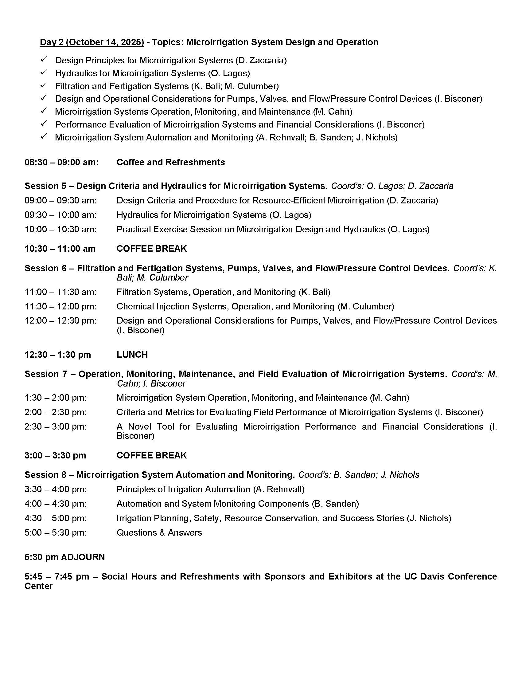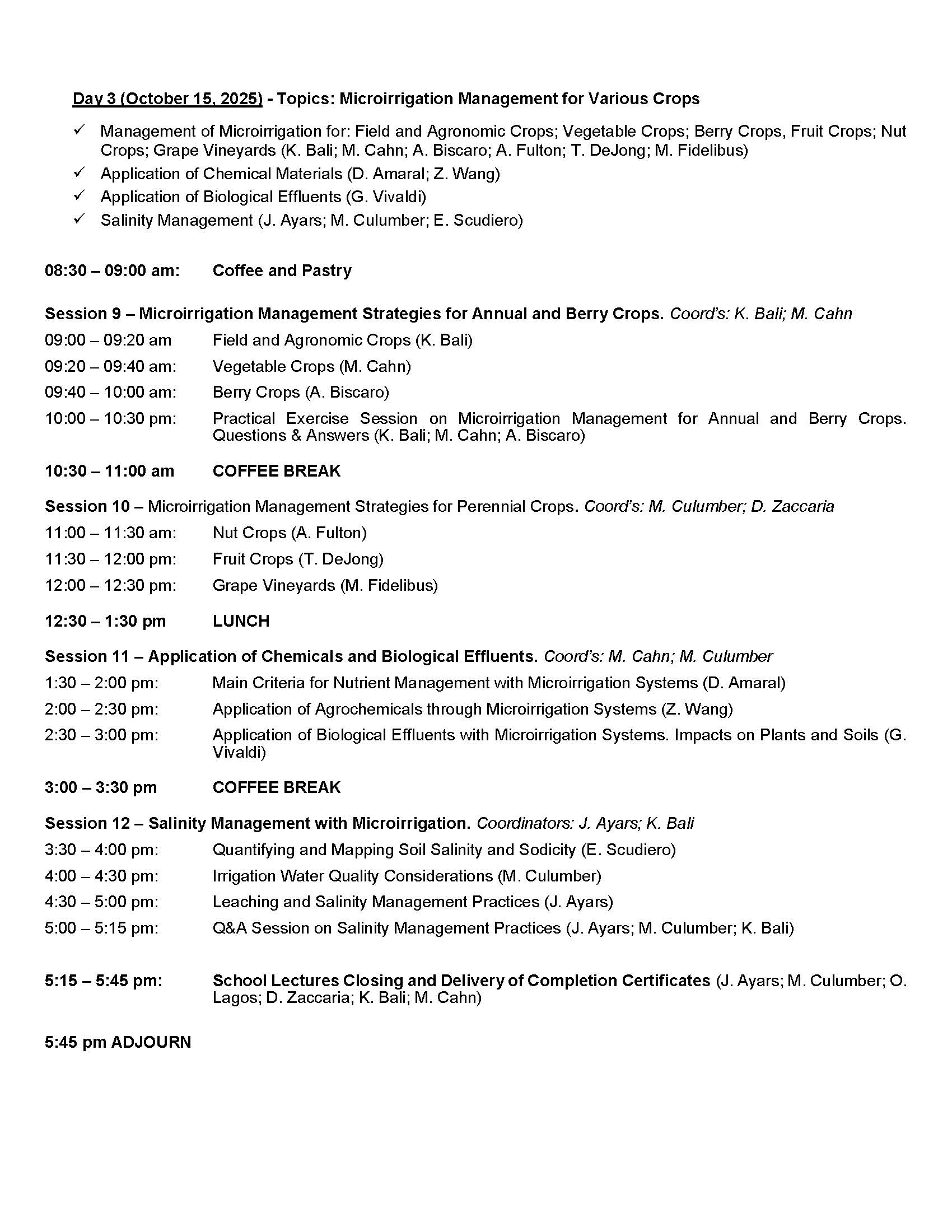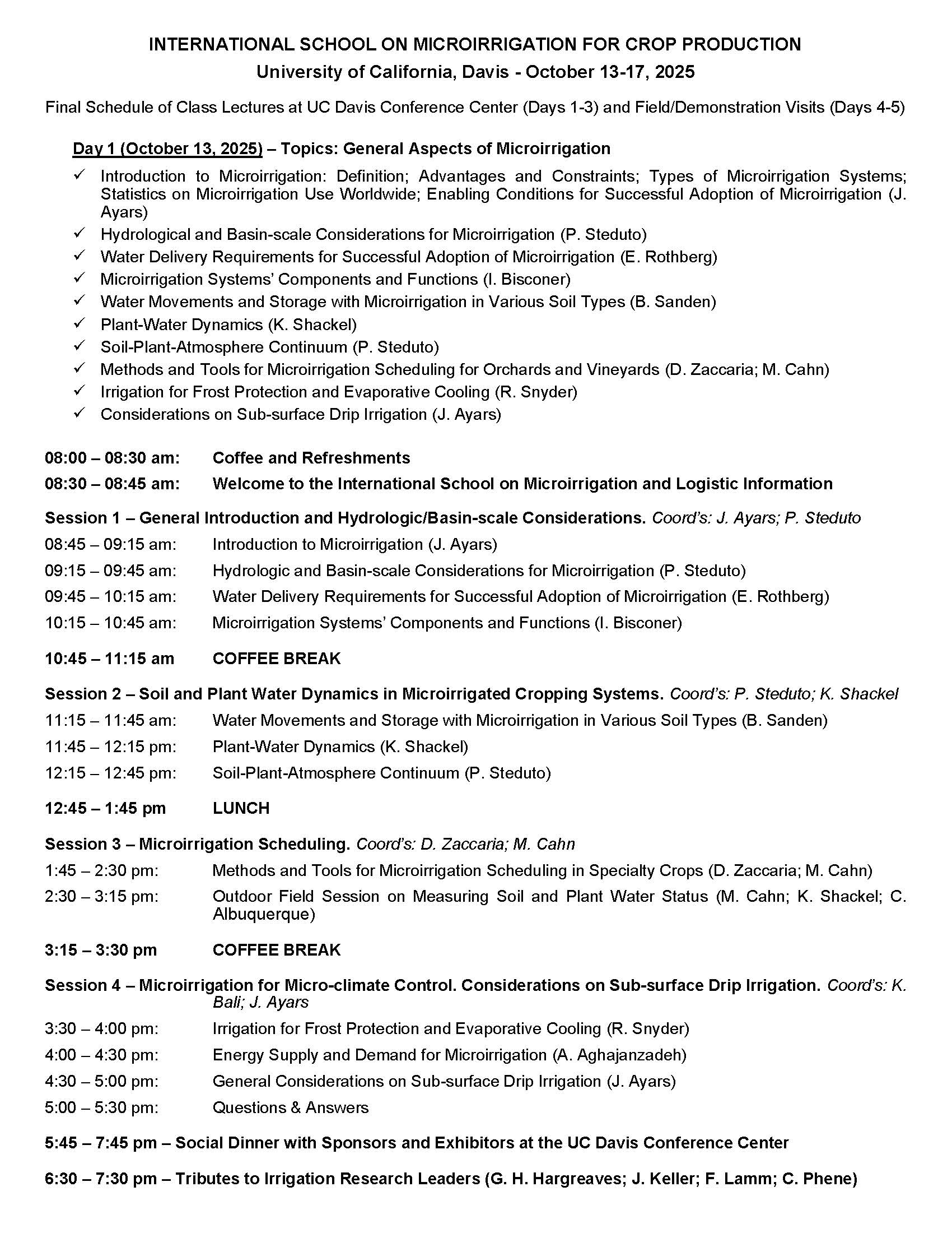 The 2025 International Microirrigation School for Crop Production will be offered in California for the very first time, October 13–17, 2025.