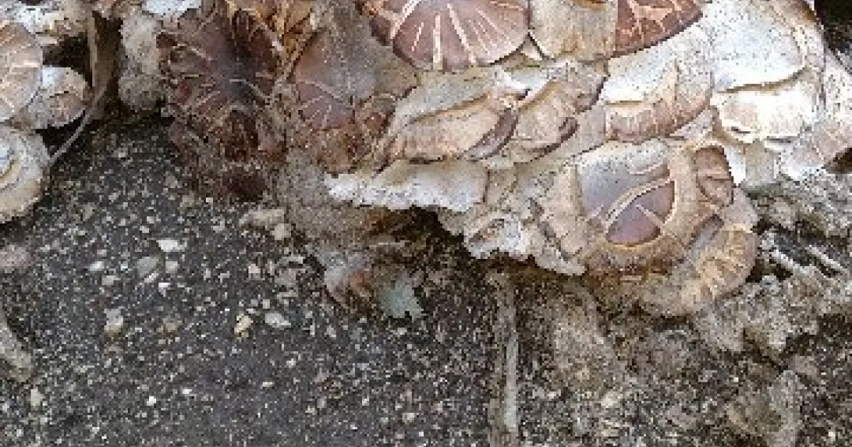 As the material settled in, over time more commonly, there would be the evidence of the decomposers - the fungi that breakdown the organic mulch into nutrients. It would show up in the fruiting bodies, like those below