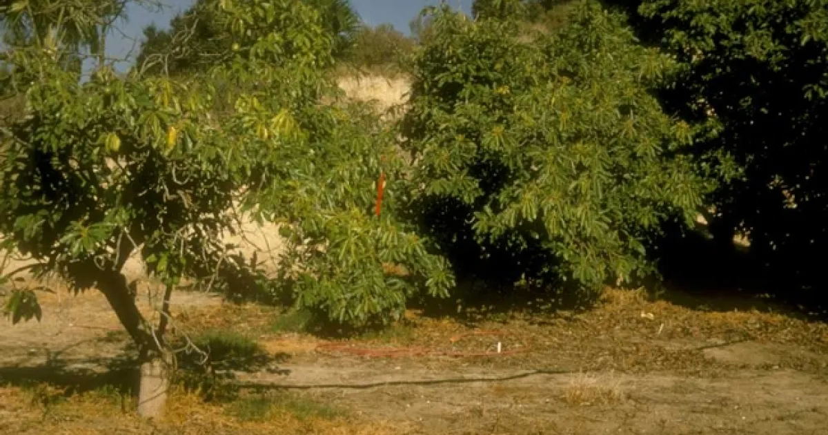 A struggling root rotted avocado tree