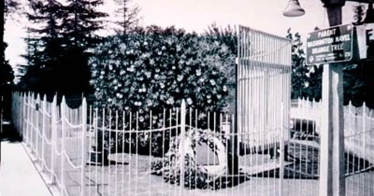 On April 23rd 1902, one of the two parent navel orange trees was transplanted from the Tibbets homestead to its present location in a small fenced park at the corner of Arlington Avenue and Magnolia Avenue. The remaining parent navel orange tree was transplanted on May 8th, 1903 to the courtyard of the Glenwood tavern, now known as the Mission Inn.