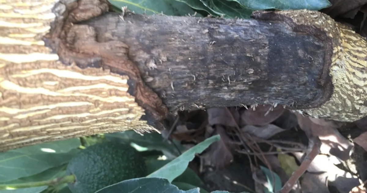 Gophers are not usually a problem in mature avocados. They will often chew the bark below ground. Ground squirrels when they get hungry can go after just about any part of the tree, trunk branches and fruit. Voles or meadow mice will go after bark about 2 inches above ground. Rabbits can take out bark up to a foot above ground. This bark damage often leads to the yellowing of the canopy and if damage is extensive enough, wilting of the canopy. Growers don't normally see the damage until they see the wilted tree and start looking for the problem. If healing along the margins of the damage is occurring, it means it was damage that was done previously. If margins are still ragged, it means the beasts are still enjoying the tree. Trapping, poisons and a busy Jack Russell terrier are all effective, especially if used together. Voles especially like mulch around the base of the tree, and should be pulled away a foot to 18 inches. They make tunnels thought the mulch which then becomes a diagnostic for identifying the cause.