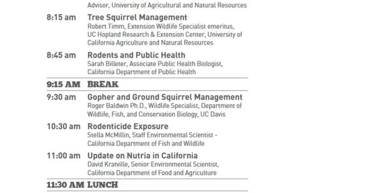 The Vertebrate Pest Council is hosting a seminar series this year in conjunction with new partner Target Specialty Products. Don't miss this unique opportunity to learn about wildlife management of a number of bird and mammalian species from staff at the University of California, California Department of Fish and Wildlife, California Department of Food and Agriculture, the Department of Pesticide Regulation and more!