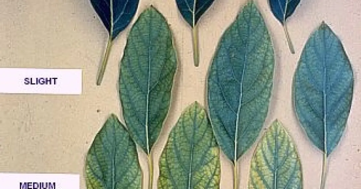 Outdoors, exposure of nursery plants to air pollutant gases such as ozone (fig. 3), carbon monoxide, nitrous oxides and sulfur dioxide can cause damage. Typical symptoms vary widely, but include slow growth anddiscolored, dying, or prematurely dropping foliage. Damage is often found where plants are located near sources of polluted air such as near