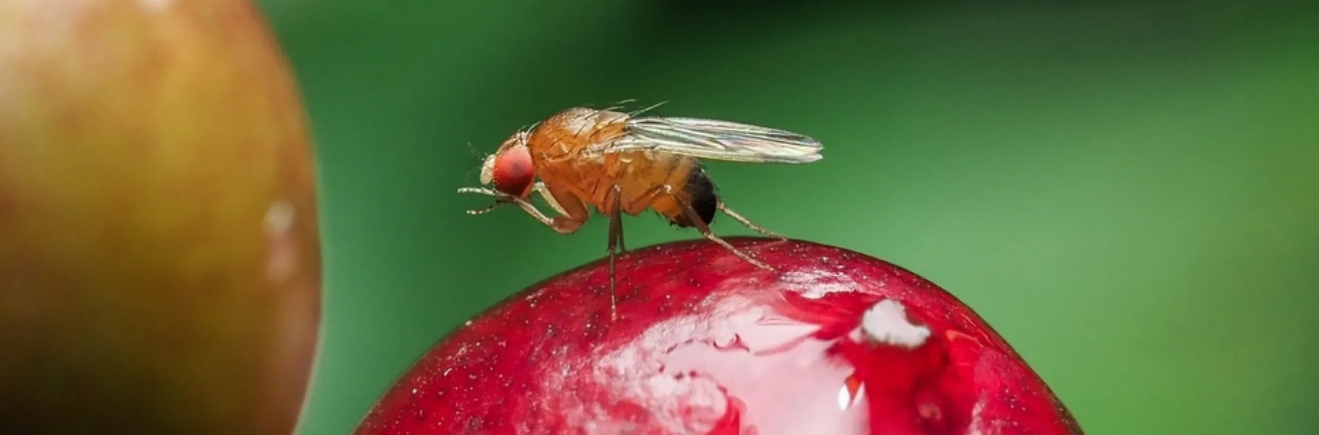 Spotted wing drosophila are small flies that love soft-skinned fruits such as cherries, blueberries, raspberries, blackberries, and strawberries. This insect looks a lot like the common fruit fly you might see around overripe fruit in the kitchen, but what makes spotted wing drosophila so destructive is that they attack backyard fruit while it’s still ripening and undamaged, not just overripe or rotting fruit.