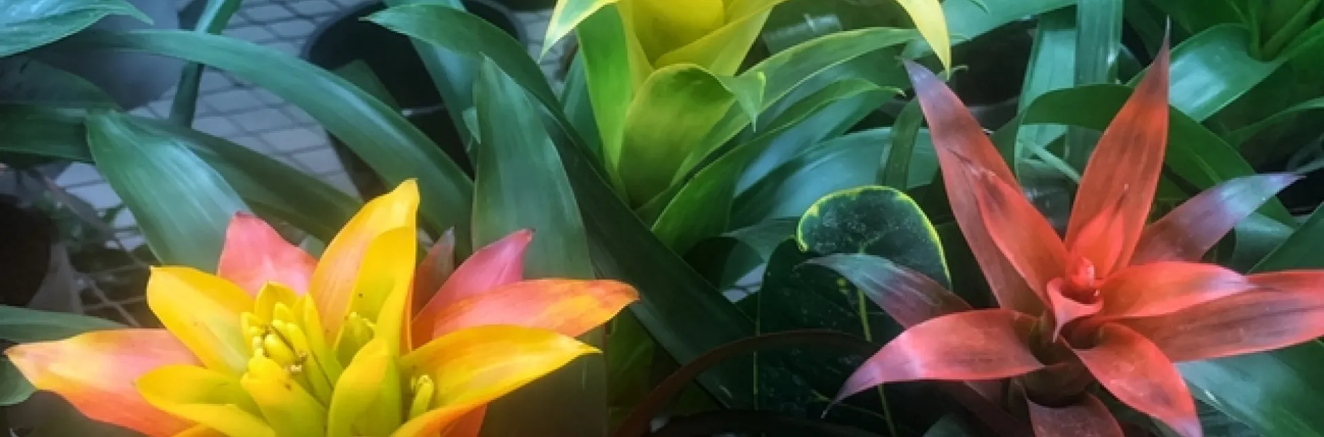 To flourish, Bromeliads need a well-draining potting soil with some sand. Orchid mixes work well. Water by moistening the soil or by filling the center depression or the “cup” formed by the rosette of leaves. Keep the soil moist, but not soggy as these plants are susceptible to root rot. If watering the cup, be sure to flush the cup to prevent salt build up. Different species require different amounts of light. Some plants can take a full tropical sun while others are less tolerant and need indirect light. If the main leaves are yellowing, it's getting too much light. If they are darkening, it's getting too little light. Temperatures should be between 60-85 degrees Fahrenheit with some humidity, keeping in mind, these are tropical plants.