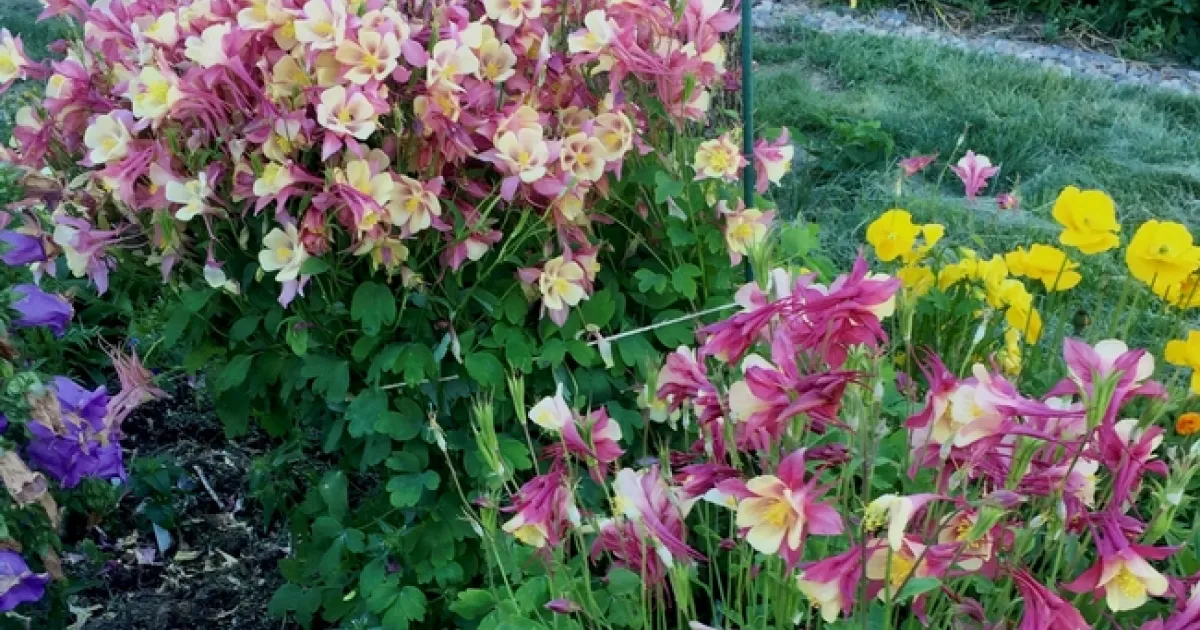 Columbine plants are considered to be garden charmers, boasting of lacey foliage and exquisitely-shaped airy flowers in varying colors, depending on the variety.  Layers of color often occur from soft pastels to intense hues with white and yellow accents. Columbines have sepals and petals that frequently contrast in color which create a layered effect. It is a popular cutting flower and lasts about two weeks in floral arrangements.