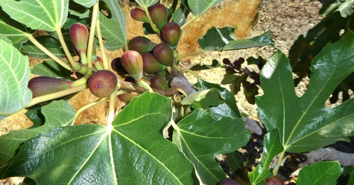 Description: Figs naturally grow to about the same height and width. They have large tropical looking leaves and they are not particular about soil. Home-garden figs do not need pollinating. Fertilize with low nitrogen fertilizer in early spring.