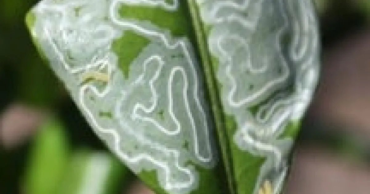 The Citrus leaf miner does most of its damage to the flush of new growth on citrus that occurs during the warm summer months, although it does not damage the fruit. Feeding damage occurs on the leaves.