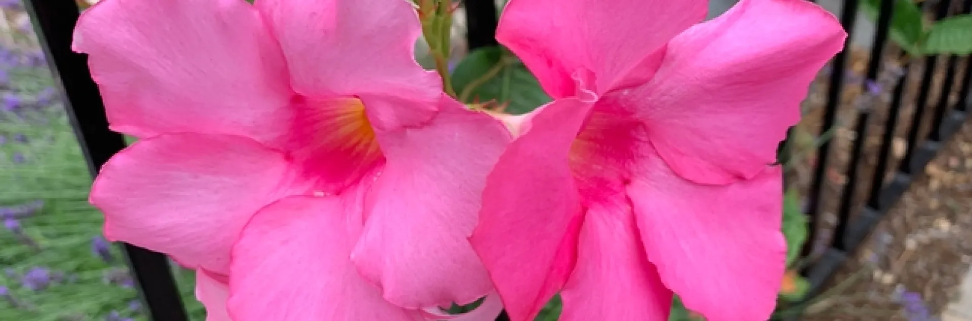 Snapshot: Mandevilla come in many varietals both evergreen and deciduous, vines or vining shrubs. They produce a showy, unscented flower featuring five broad lobes. The flowers are trumpet shaped. The leaves are glossy and oval. Plants climb by twining and will look amazing if trellised or allowed to crawl over and around fencing. They require mild outdoor temperatures, but need heat to bloom. In colder climates they must be treated as annuals or planted in pots which can be moved indoors or to a greenhouse for the winter. Plant all hybrids in rich well draining soil. Frame, trellis or stake for support, pinching tips of young plants to create bushiness. Mandevilla is a low-maintenance plant during the growing season. Mandevilla also attracts hummingbirds. Common pests include aphids, scale, mealybugs, spider mites and whiteflies. Strong jets of water from a hose should take care of most pests problems. Further protection can be achieved using a light solution of Neem oil. For treatment of Mealybugs see, ipm.ucanr.edu/PMG/PESTNOTES/pn74174.html