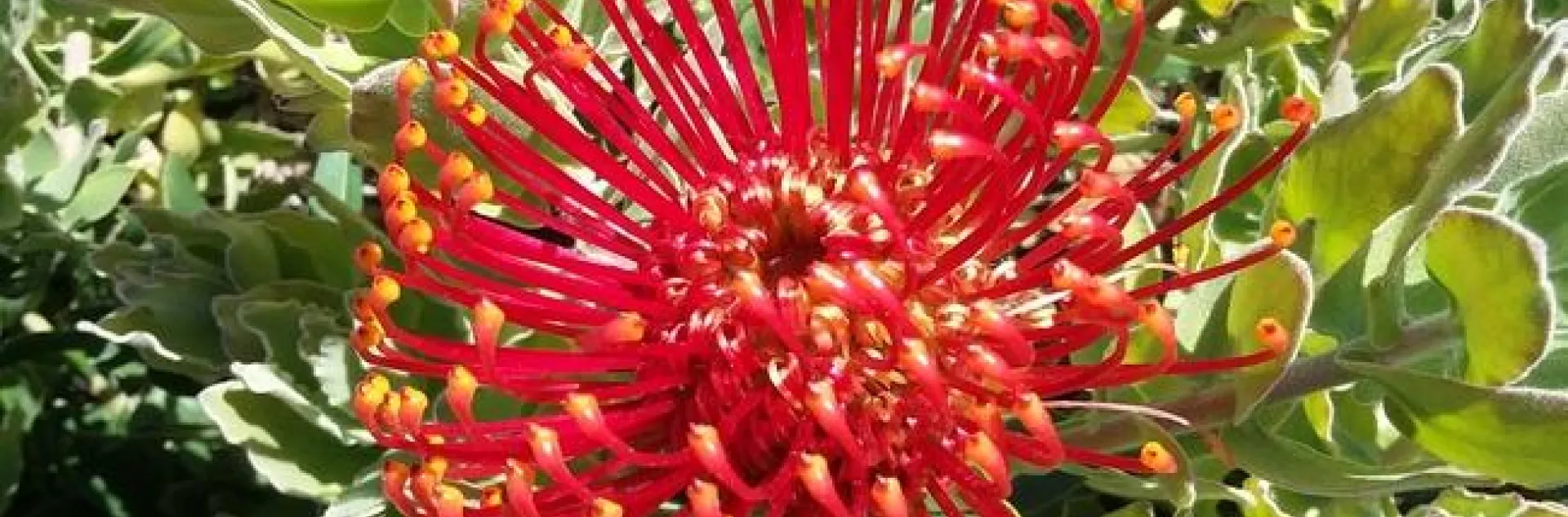 Snapshot: The words “exotic” and “pincushion” may not seem to go together, but the Leucospermum proteus achieves both. It produces inflorescences composed of many brightly colored flowers, coming together to look like a pincushion. Looking closer, it has irregular, somewhat tubular flowers in spikes, forming around a thistle-like head. Popular as cutting flowers, the blooms last for a month or so in water. Colors range from light yellow to orange-red. The leathery leaves are narrow ovals crowded along stems.
