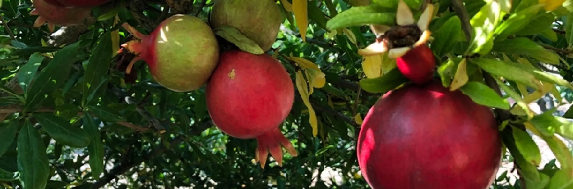 Snapshot: Pomegranates grow naturally as a shrub but can be pruned into small trees. Pomegranates are deciduous in the interior and desert areas. Along the coast, they may lose only a portion of their leaves in the winter. Pomegranates are cold hardy down to 10F when dormant and must be protected from frost in late fall before full dormancy or early spring when it begins to bud. It is adaptable to different soil types, growing best in deep loam, though it will tolerate sandy and clay soils. In wetter areas, they are prone to root decay from fungal diseases.