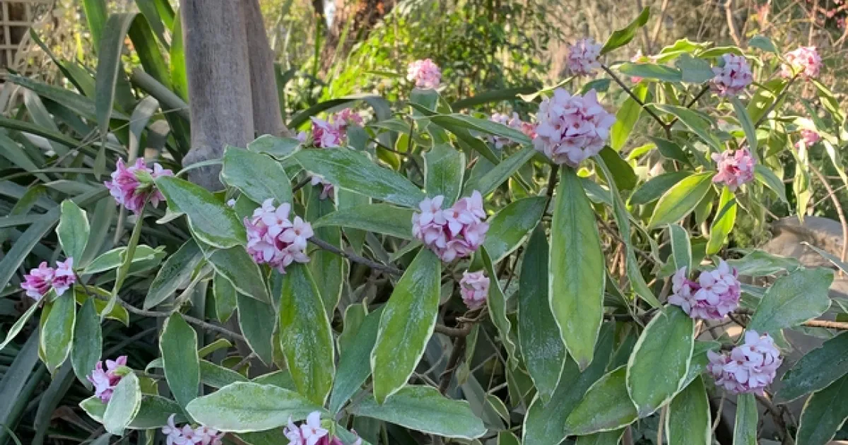 The genus Daphne contains about a dozen species that originate from different countries, such as the Himalayas, southern Europe, China, Siberia, and Japan. Their growth habits vary from 3” tall groundcover to shrubs up to twelve feet tall. Some species are deciduous, some are semi evergreen, and some are evergreen. One characteristic they all have in common is the wonderfully fragrant flowers.