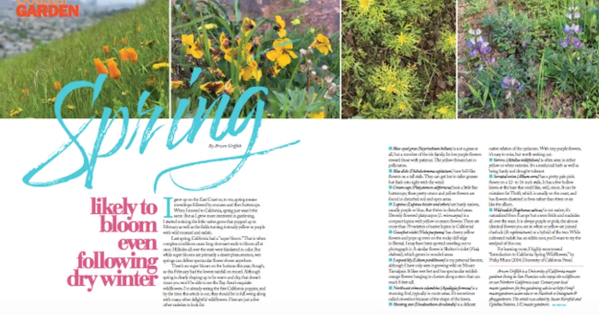 Arwen Griffith is a UC Master Gardener living in San Francisco who enjoys the wildflowers on our northern California coast. Contact your local Master Gardeners for free gardening advice at http://smsf-mastergardeners.ucanr.edu or on Facebook or Instagram @sfbaygardeners. The article was edited by Susan Kornfeld and Cynthia Nations, UC Master Gardeners.