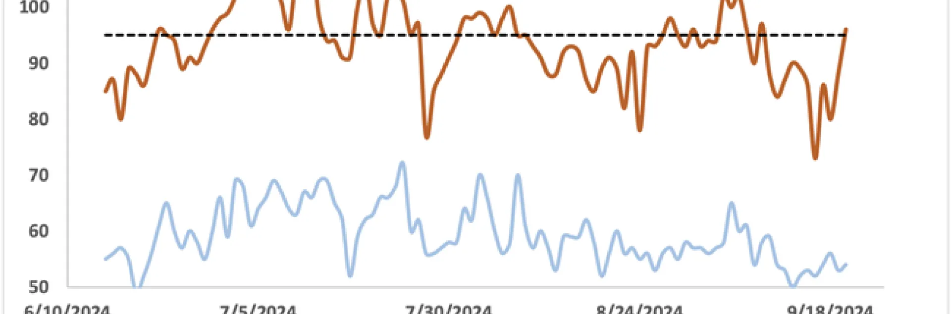 Temperature Chart from Colusa Weather Station, June 10 – August 15, 2024.