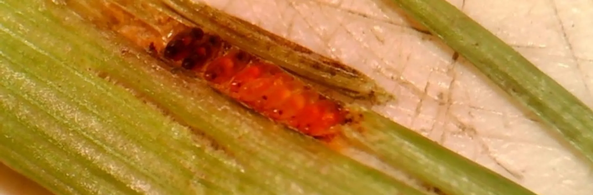 The damage was similar to what I have seen when aster leafhopper feeds on rice. The tip of the leaves get yellow and eventually burned. In this case, the damage was limited to a cold water check, so no treatment is needed.