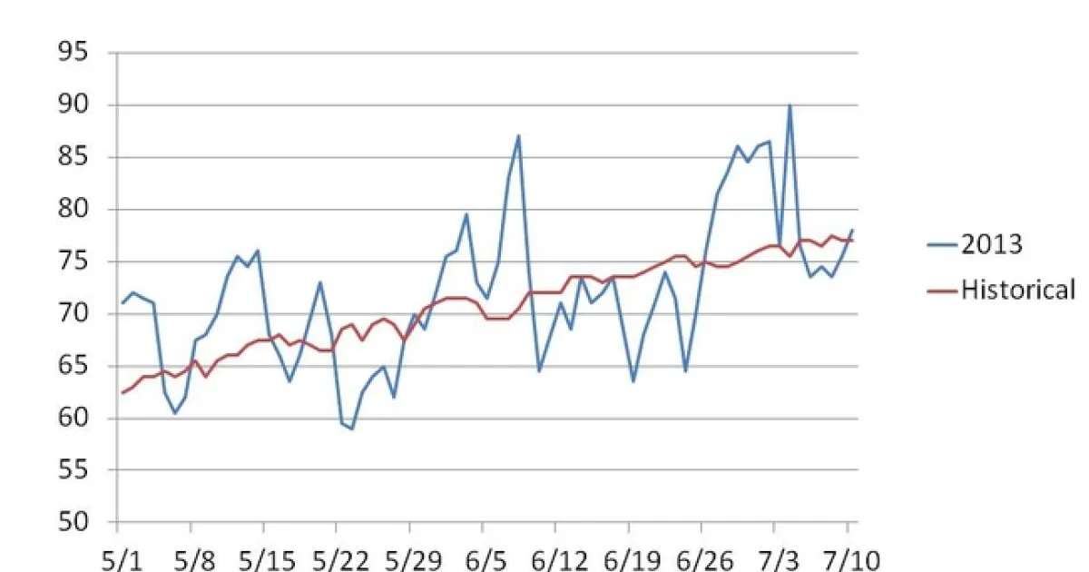 When looking at May and June individually, you realize that most of the extra DD were accumulated in June. May was closer to 2012 and to the historical average.