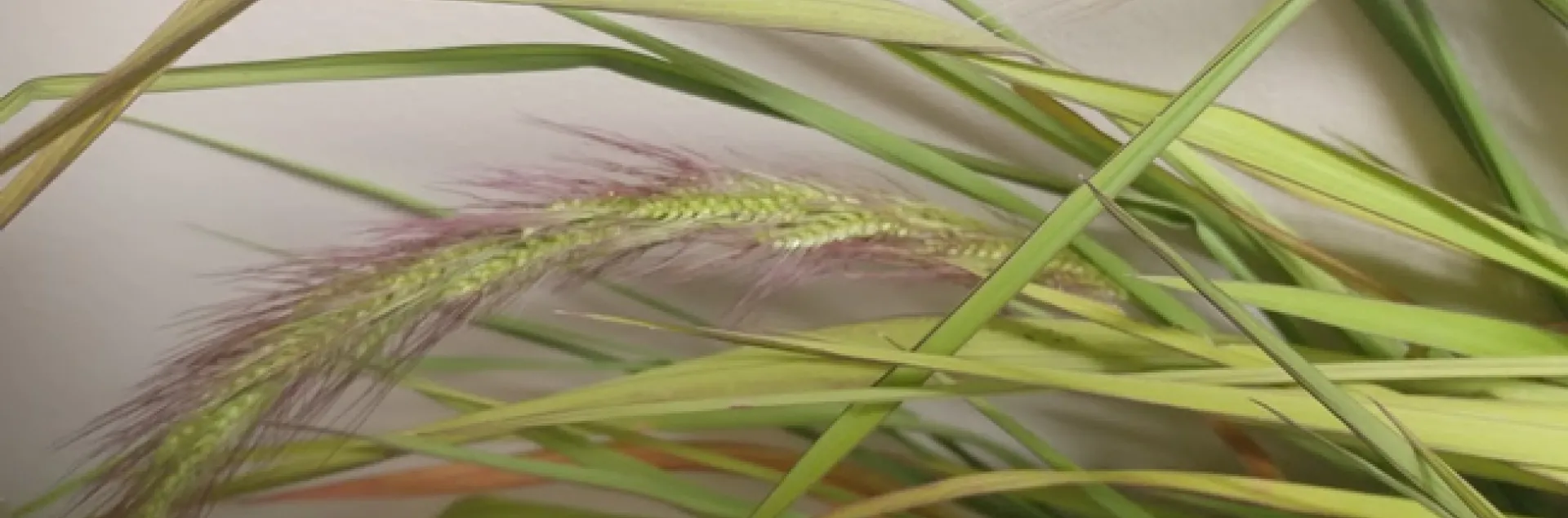 Photo 1. Seed head of unknown watergrass species (Echinochloa spp.) Notice visible purple awns.