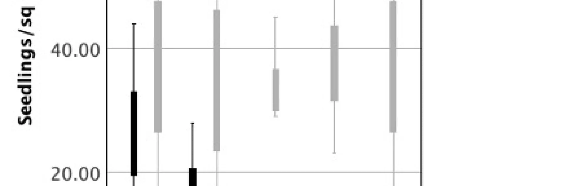 When shrimp injury occurs soon after seeding, they will feed on the emerging coleoptile and radicle, completely consuming these tissues. When this happens, seeds won't recover. If only some of the tissue is consumed, seedlings may be able to continue growing once the shrimp is controlled. The picture below shows seedlings where the coleoptile and radicle have been consumed compared to two uninjured seedlings at the bottom of the picture.