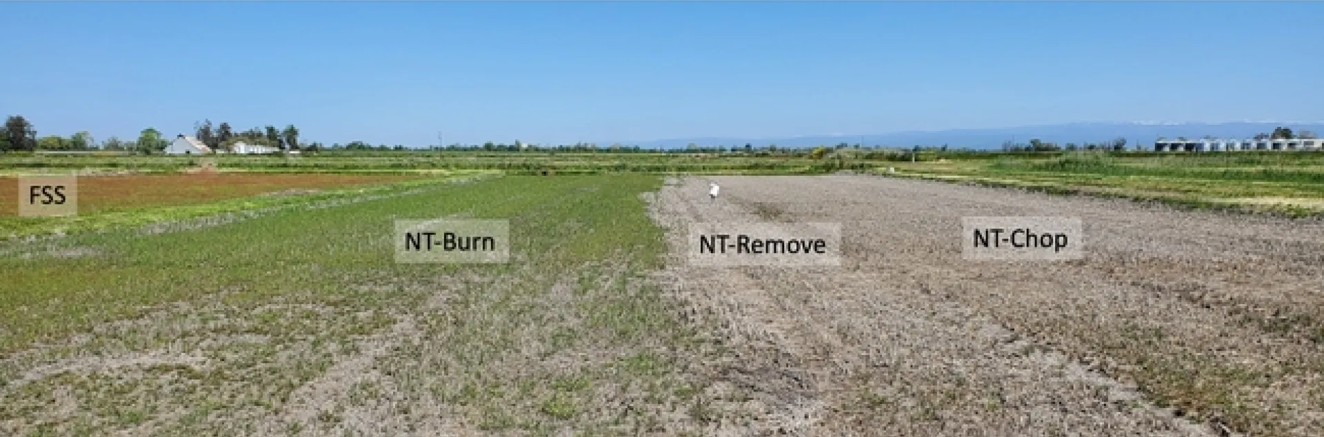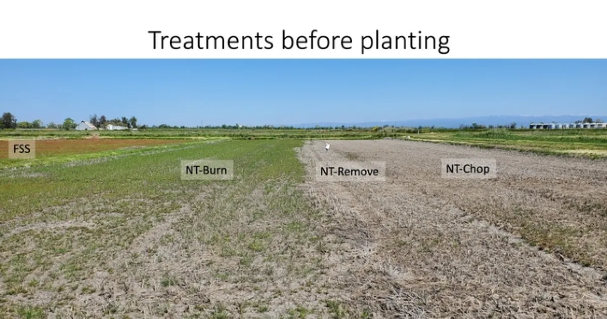 - No-till. We have three strict NT treatments. Rice was grown in 2022. After harvesting (harvested to limit ruts), the straw in the field was subjected to one of three treatments: