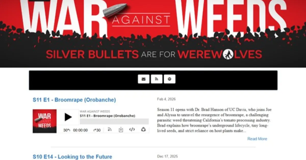 If you're interested in this interview or any of their catalog of weed-related podcasts, here's a link to the War Against Weeds landing page: https://waragainstweeds.libsyn.com/ and here's a direct link to my February 4, 2026 broomrape discussion https://waragainstweeds.libsyn.com/s11-e1-broomrape-orobanche