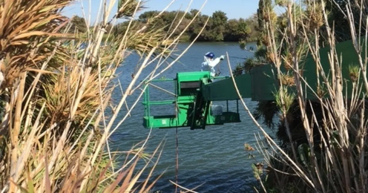 The DWR funding was supplemented by USDA funding since Arundo is one of the species targeted by the USDA-ARS Delta Region Areawide Aquatic Weed Project (DRAAWP). The DRAAWP funding allows us to continue our chemical control efforts and to expand our area of work to the entire legal Delta. The Delta Conservancy is now coordinating chemical Arundo control efforts with biological control treatments. Combined chemical and biological control efforts on Brannan Island State Recreation Area (Figures 4 and 5) began in late summer of 2017 with permission from California State Parks.