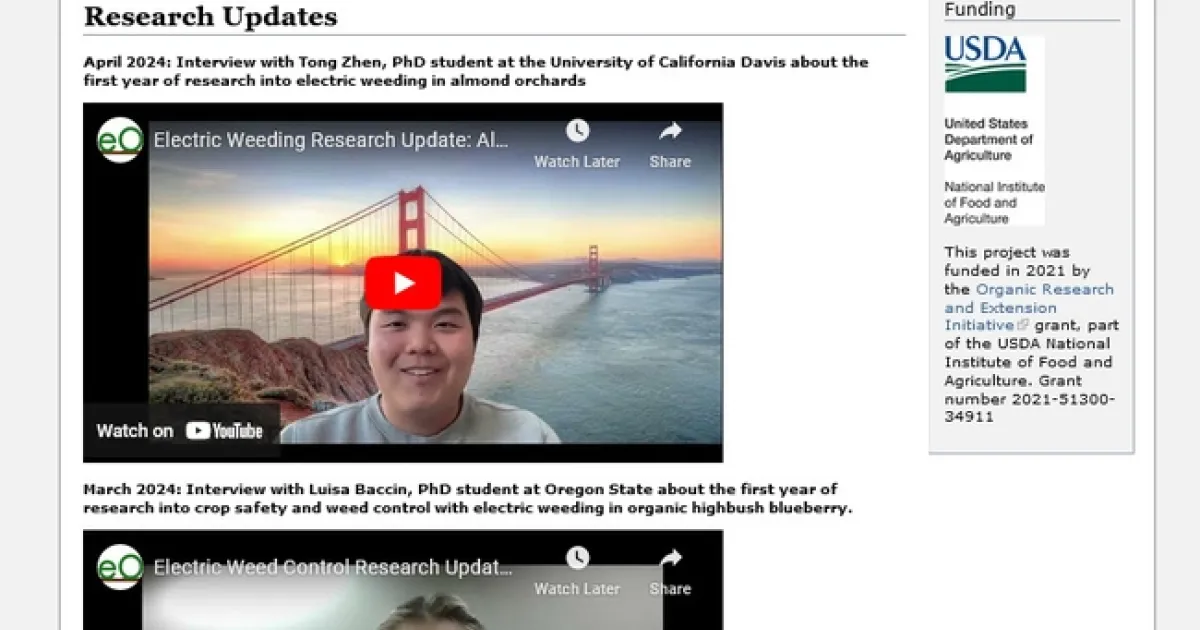 From the eOrganic and Performance and Economics of Electric Weed Control in Organic Perennial Crops Project: