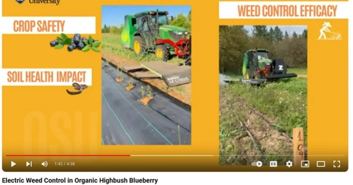 Today, Luisa Baccin, the Oregon State University grad student on the project, just posted a nice YouTube video of her electrical weed control research in organic blueberry in the Willamette Valley of Oregon. It's a nice walk-through of the research and has some good footage of the equipment in action. Here's the link to Marcelo and Luisa's video if you're interested: https://youtu.be/a_HHKVHeMjw?si=IKifjYX9M_ECTKrz