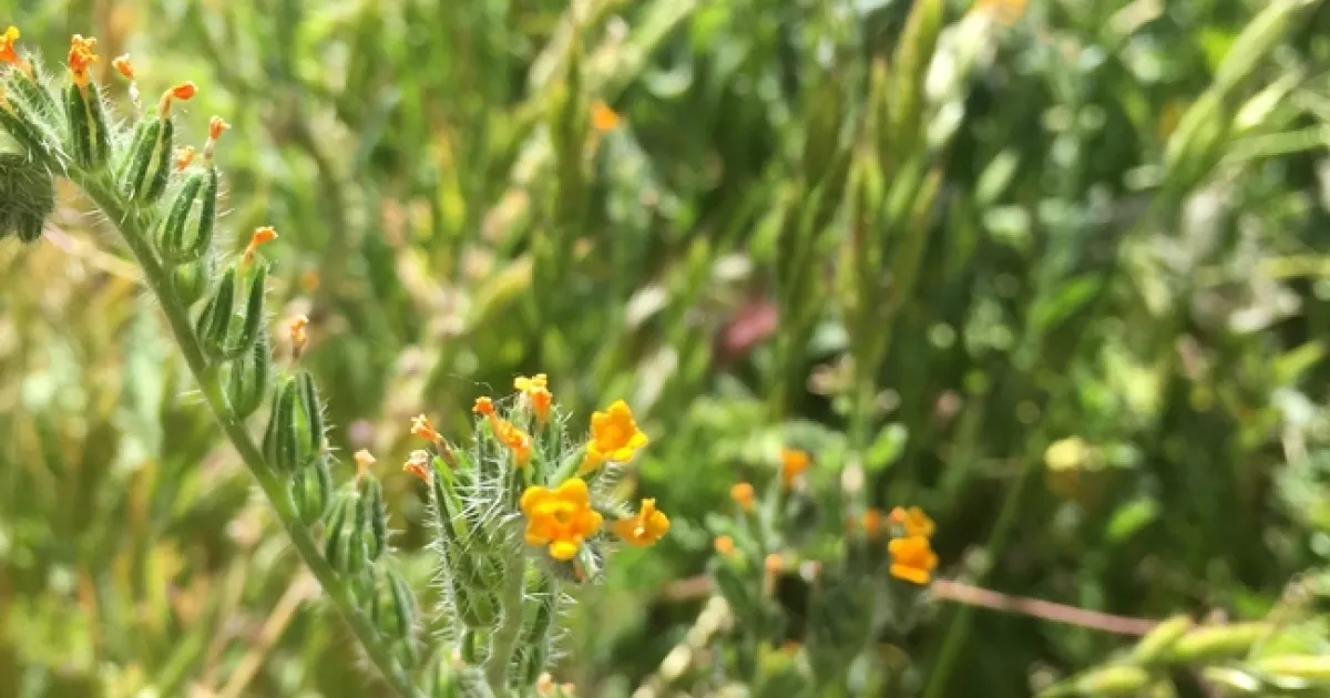 Fiddleneck (Amsinckia spp.) is a native plant in California. It occurs in grasslands and open, disturbed areas (DiTomaso, Kyser et al. 2013) and is sold as a pollinator plant in native plant seed mixes. Its bright yellow flowers catch the eye of those looking for wildflowers. However, it is important to note that fiddleneck is toxic to livestock.