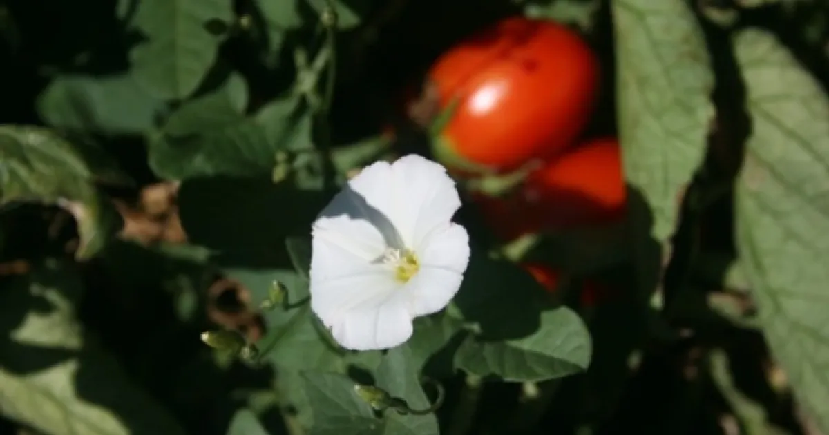 Bindweed is a headache not only for its persistent and pernicious growth habit and ability to reduce tomato yields, but also because it can physically stop a processing tomato harvester in the field. Vigorously growing vines can become entangled around the shaker and conveyor belts, requiring the equipment operator to shut down and manually clear out the foliage.