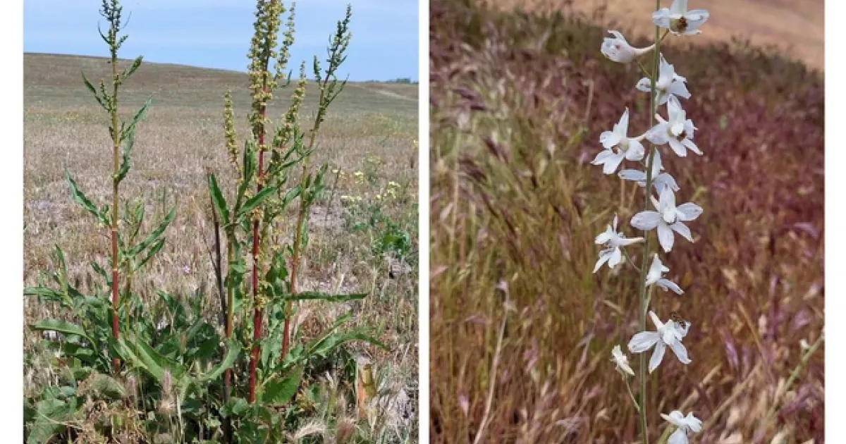 Figure 1. Toxic perennials include curly dock (Rumex crispus) and larkspur (Delphinium spp).