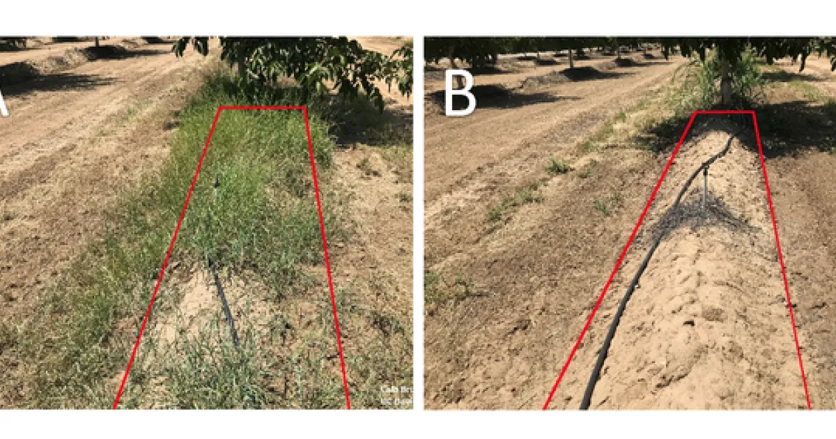 A common weed control program in tree nut orchard crops in California consists of a winter preemergence/postemergence herbicide tankmix application, followed by a burndown application in the spring with a postemergence herbicide, and then an additional burndown herbicide application before harvest. The spring postemergence herbicide application is crucial because it controls the escapes from the winter treatment. However, because most of the burndown herbicides have no residual activity (e.g. glyphosate, glufosinate, paraquat) or relatively short residual activity (e.g. oxyfluorfen), weeds that germinate after the spring treatment may still develop during the summer. Finally, in the summer, the weeds will grow larger and become less prone to control either because of their size or because of resistance to common summer POST herbicides (i.e. glyphosate). In this context, season-long weed management strategies become crucial to prevent weeds from interfering with irrigation systems or harvest operations in orchard crops in California.