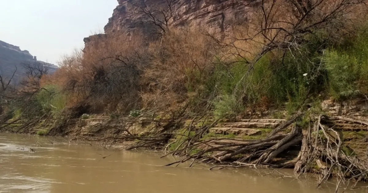 A couple of weeks ago I was feeling hot, sweltering in the triple digits of Canyonlands National Park in Utah, which in all honesty would be considered a moderate day for my colleagues down in the Imperial Valley. But, I live in northern California, and what I was seeing made me think I was hallucinating from the heat. I did a double take because a good portion of the vegetation surrounding the river was turning brown and dropping their leafs, with some stems appearing completely dead! Being a weed scientist, dead plants are exciting, and I wanted to know what was going on!